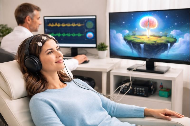 Durante o neurofeedback, o paciente interage com jogos, vídeos ou sons que respondem ao seu estado cerebral em tempo real.